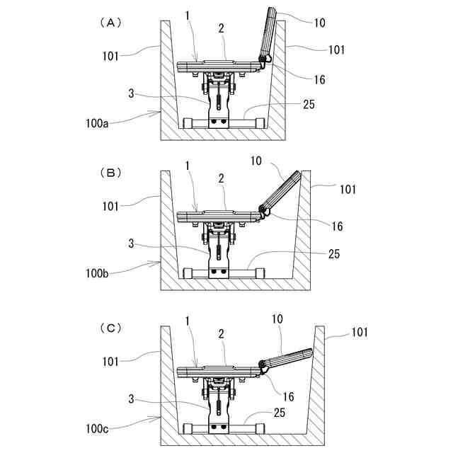 ここで、展開位置保持手段は、展開板部を保持する角度位置を自由に定めることができる構成のものと、予め定められた角度位置を適宜選択して展開板部を保持できる構成のものとのいずれであっても良い。