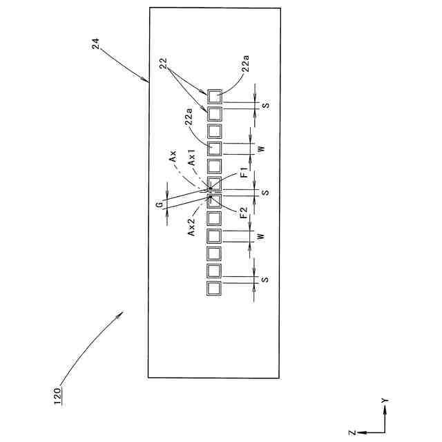 上記「特許文献1」に記載された構成を採用することにより、複数の発光素子相互間に多少の隙間が存在していても、これら複数の発光素子の同時点灯によって、その光源像の集合体として連続的な横長の配光パターンを形成することが可能となる。