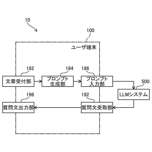 (3)上述した形態の情報処理装置において、前記プロンプトは、前記文章に間違いがある場合に該間違いに関する質問文を前記大規模言語モデルに出力させる指示を含んでもよい。この形態の情報処理装置によれば、ユーザから入力された文章の間違いに起因して、不適切な質問がLLMから出力されることを軽減できる。