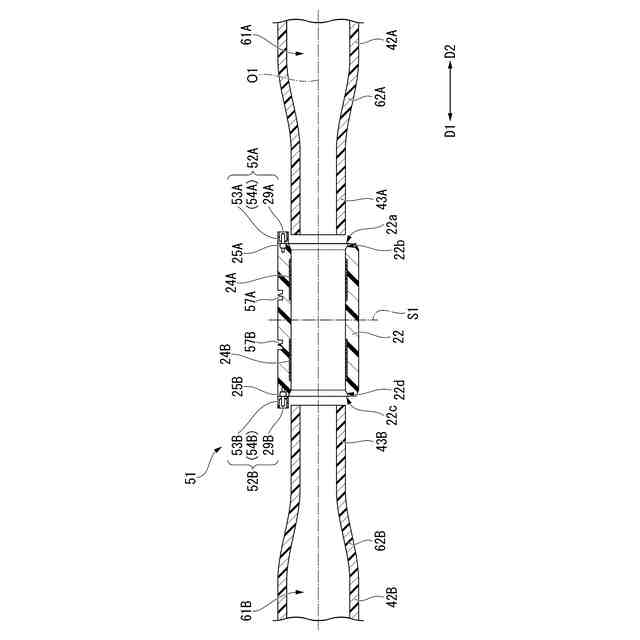(2)本発明の態様2は、前記継手本体は、筒状に形成され、前記継手本体の内周面における、前記軸線方向において、前記電線よりも前記第1端部とは反対側の部分に配置され、径方向内側に向かって突出した突出部を備える、(1)に記載の電気融着継手であってもよい。