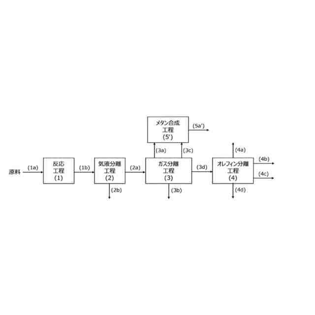前記ガス分離工程(3)で得られた二酸化炭素(3a)および水素(3c)を原料として、メタン(5a’)および水(5b’)を得るメタン合成工程(5’)を有する、