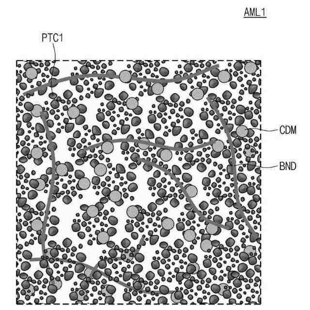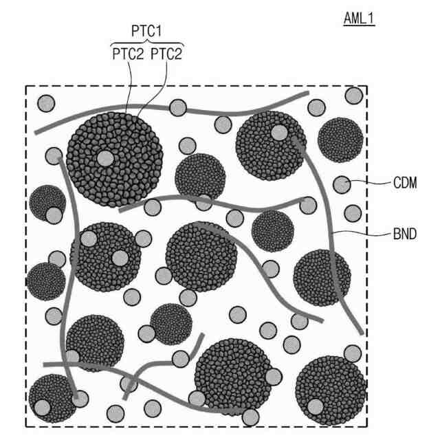 前記第1粒子内の炭素の含量は、1.5重量%ないし2.5重量%である、