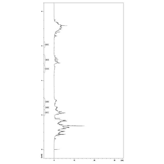 H-NMRにおける該当する化学シフト値間の積分値を示す。)