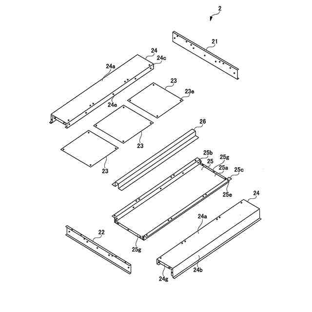 前記中央天板における前記中央天面部及び前記縁部で形成される空間内には、中央補強部材が配置される