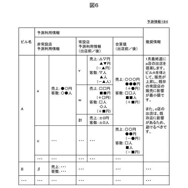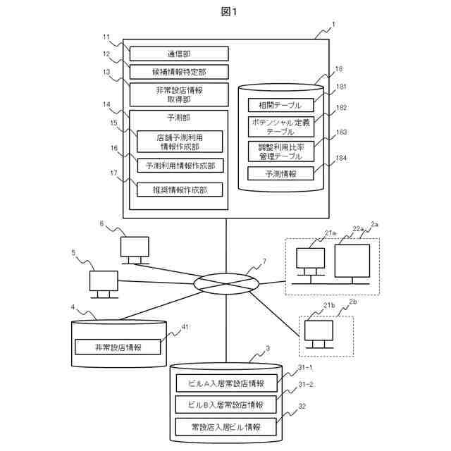 上記の課題を解決するために、本発明では、施設に出店している常設店および影響領域へ出店候補の非常設店の利用情報から、常設店の利用に関する予測を行う。なお、出店候補とは、非常設店側の要望であってもよいし、施設側からの起案や提案であってもよい。