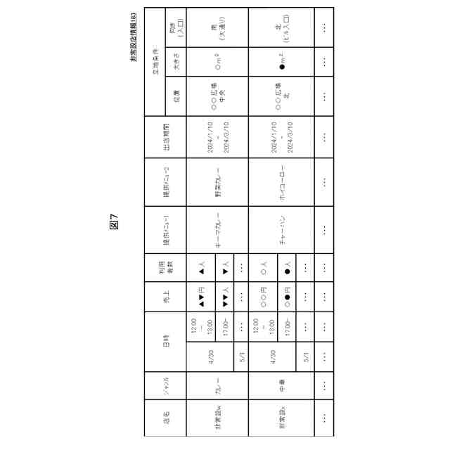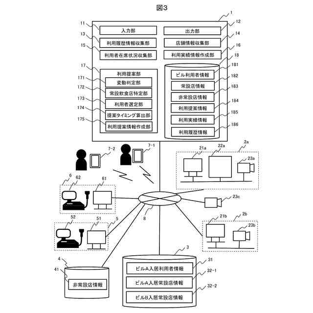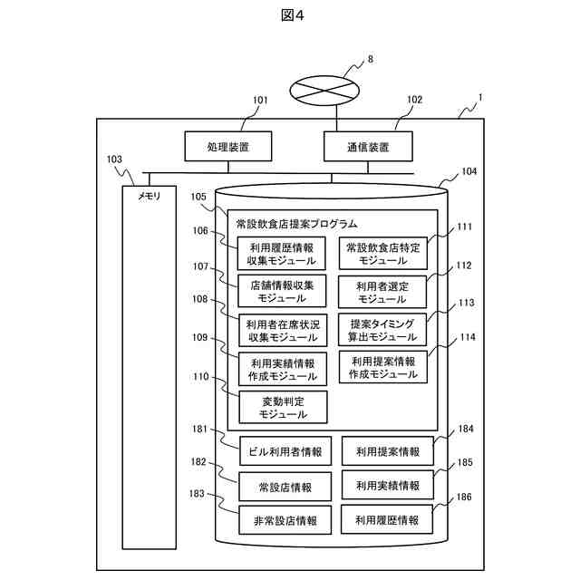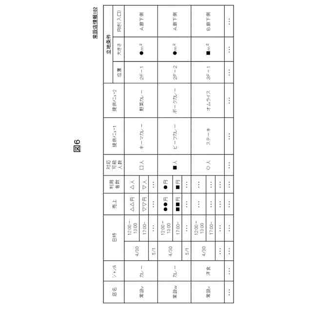 しかしながら、特許文献1では、施設全体での共存共栄や非常設飲食店の出店の影響は考慮されていない。つまり、影響領域内での来店や店舗での購入(含む飲食等のサービスの受領)といった利用状態については考慮されていなかった。また、特許文献1では、二次会との限定的な状況での提案のみで汎用的な提案は困難である。
