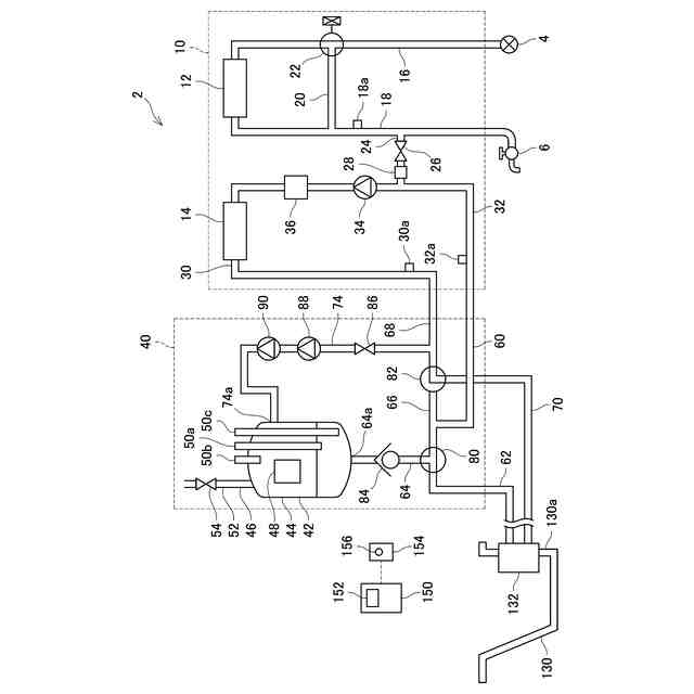 前記第1流路に設けられ、前記第1流路に流れる水を前記タンクに向けて圧送するポンプと、