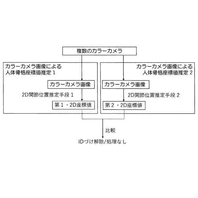 従来は、そのまま計測を行ったり、もしくは、出力された対象の3D関節位置において、人間の目によって左右反転の関節位置を検出し、その部分の関節のID付けを解除し、当該関節位置の補間を行ったりしていた。
