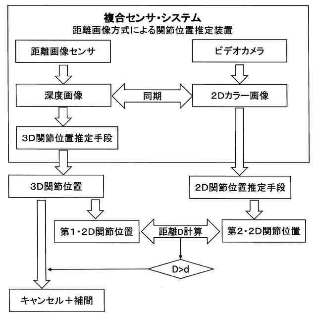 前記3D関節位置推定手段は、距離画像センサにより取得された距離画像を用いるもので あり、