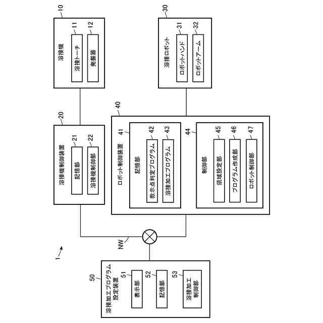 【解決手段】ワークにレーザ光を照射可能な溶接トーチを保持する溶接ロボットの教示点を溶接加工プログラムに登録可能な制御部を備え、前記制御部は、ユーザにより指定された前記教示点の候補を受け付ける教示点候補受付処理と、前記ワークが載置される載置面と、受け付けた教示点候補で前記レーザ光を照射した場合の前記レーザ光の軌跡とが交わるか否かを判定する平面交差判定処理と、前記平面交差判定処理において、前記載置面と前記軌跡とが交わると判定した場合、前記教示点候補を前記溶接ロボットの前記教示点として前記溶接加工プログラムに登録する教示点登録処理とを実行可能に構成されている。