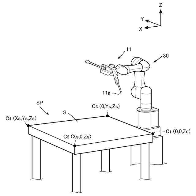 前記制御部は、前記教示点候補における前記先端部の位置が前記載置面内に位置していると判定した場合、前記平面交差判定処理を実行するように構成されている