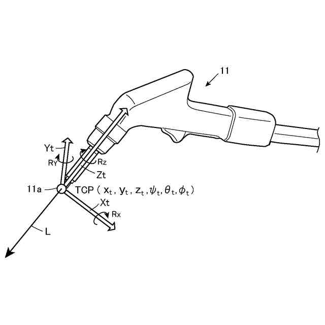 具体的には、まず、教示に先だって加工対象ワーク面に関連させた姿勢を有する座標系が設定される。そして、特許文献1のレーザロボットは、レーザロボットのジョグ送り操作によって照準用のレーザビームの照射点を希望する加工点に一致させることで、ワーク上の実際のレーザビームの照射点との対応を視認しながらレーザロボットの教示点を定めることができる。この教示点には、レーザロボットやレーザツールの位置及び姿勢に関する情報が含まれている。
