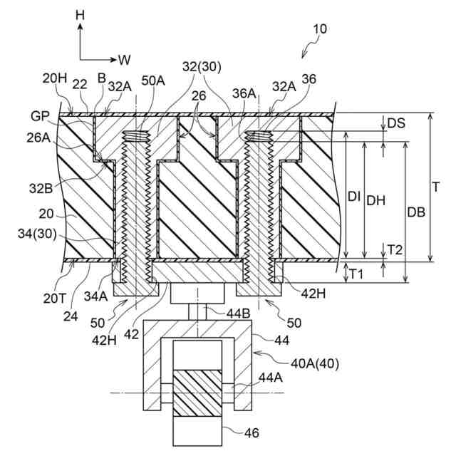 前記インサートナットの頭部は、前記脚部よりも拡径されている、