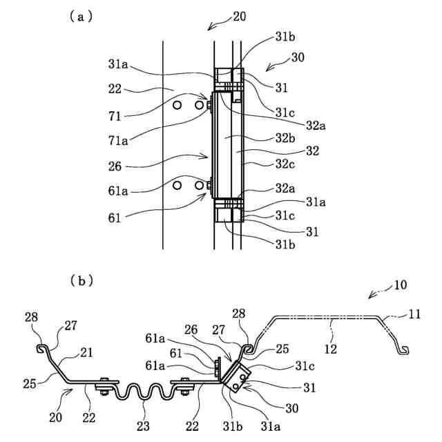 前記第4の工程の後、前記下側取付け部材の上方に、左右方向の前記可撓継手の上縁部を取り付ける上側取付け部材に、間隔保持部材を締結部材により着脱可能に設けるとともに、中央連結部を前記締結部材により締め付ける前記挟み込み部材を介して連結して構築する第5の工程を備える、