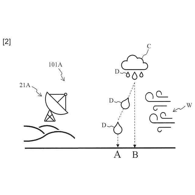 一方、引用文献1や引用文献2では、雨粒が地表に到達するまでの間に雨粒が環境から受ける影響は考慮されていない。しかしながら、風等の影響によって実際の降雨位置とレーダ観測による予想降雨位置との間に誤差が発生する場合もあり、降雨量を精度よく推定するためには、雨粒が地表に到達するまでの間に雨粒が環境から受ける影響を考慮することが望ましい。