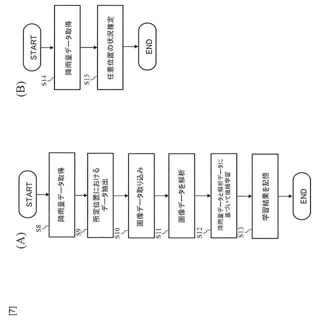 気象レーダは上空の雨雲から落下する雨粒によって反射される反射波を検出し降雨量を推定するため、地表における実際の降雨量との間に誤差が生じていた。そこで、引用文献1や引用文献2では、地表に設置される地上雨量計で観測された観測値を基に補完することにより、降雨量を推定している。