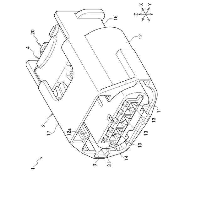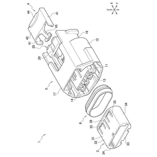 図1~図4に示すように、コネクタ1は、ハウジング2と、フロントホルダ3と、嵌合検知部材4と、シール部材6とを備える。本実施形態において、コネクタ1は、前後方向に沿って相手コネクタ101(図19~図23参照、オスコネクタ)と嵌合可能に構成されるメスコネクタである。
