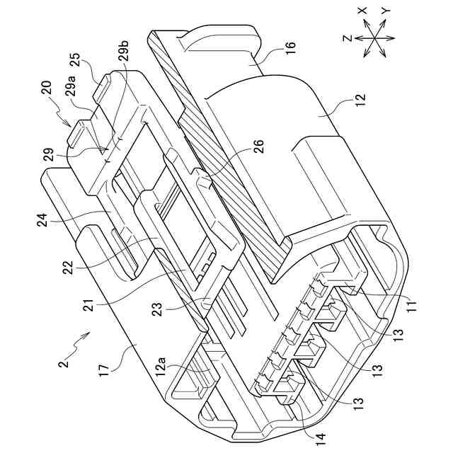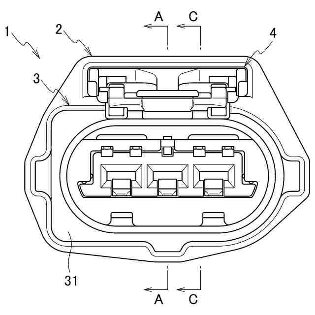 【解決手段】コネクタ1は、相手ハウジング111と嵌合可能なハウジング2と、ハウジング2の前端部14に装着されるフロントホルダ3とを備える。ハウジング2は、本係止ロック部28を有する。フロントホルダ3は、フロントホルダ3がハウジング2に本係止される際に本係止ロック部28に係止される本係止ロック37と、本係止ロック37を前後方向に挟み込むように設けられる一対の本係止スリット37aとを有する。