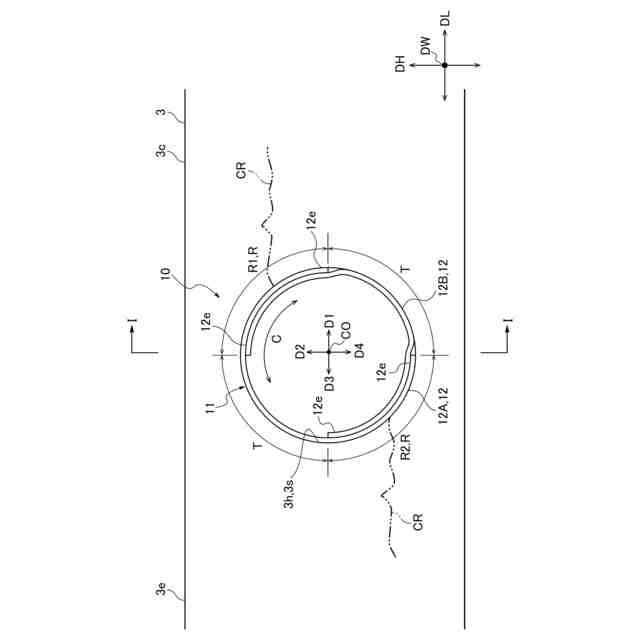 木質構造部材に貫通孔が設けられた場合、木質構造部材に作用する荷重に起因して、貫通孔の内壁から木質構造部材の内部へと進行するように、割裂が発生する可能性がある。このような場合において、割裂は、貫通孔の内壁に、貫通孔の縁の接線方向への引張力が作用することで、生じ得る。