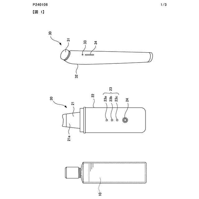 【解決手段】美容セットは、顔、首元等の美容(スキンケア、首元等の)を行うためのセットであり、洗顔用のクレンジング液10と、肌の美容用の第1電子美容器20及び第2電子美容器30とを備えている。第1電子美容器20は、顔等の肌に直接当てて使用する美容器であり、ヘッド部21と、本体部22とを含み、ヘッド部21は、ユーザによって動作モードが選択されると、高速に振動(超音波振動、例えば、「24000回/秒」)するように構成される。第2電子美容器30は、第1電子美容器20と同様に、顔等の肌面に直接当てて使用する美容器であり、ヘッド部31と、本体部32とを含み、ヘッド部31は、電源を投入すると、高速に振動(超音波振動、例えば、「13000回/秒」)するように構成される。