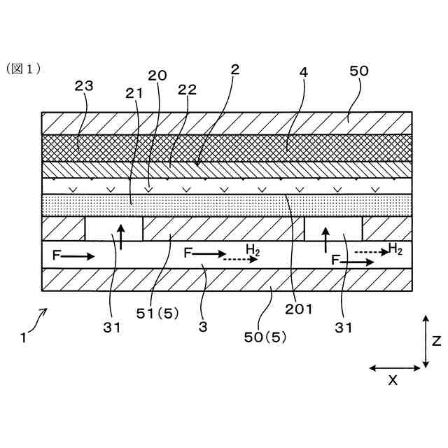 電解質層(20)と、前記電解質層の第1面に設けた第1電極(21)と、前記電解質層の前記第1面と反対側の第2面に設けた第2電極(22)と、を備えた電解セル(2)と、