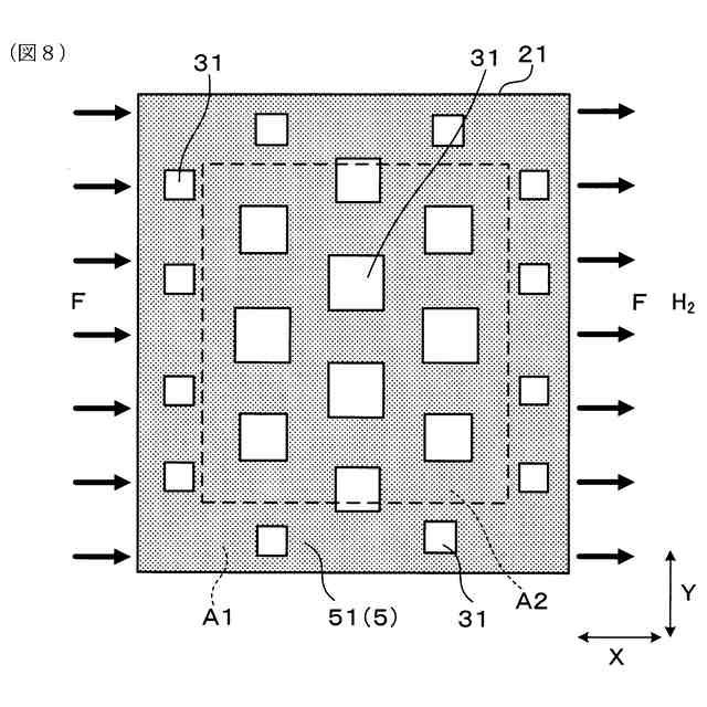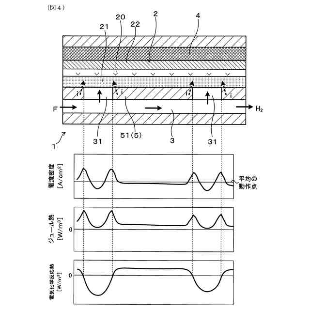 しかしながら、反応流体を電気分解して水素を生成する電解装置において、セルの中央付近の温度が高くなりすぎる場合があり得る、という課題がある。すなわち、供給される電流密度が高くなると、ジュール熱が大きくなる。そして、セルの内側領域において発生した熱は、周囲に放熱され難いため、内側領域の温度上昇が懸念される。このように、電解装置においては、内側領域の温度が、外周領域に比べて高くなりすぎる場合があるという課題がある。