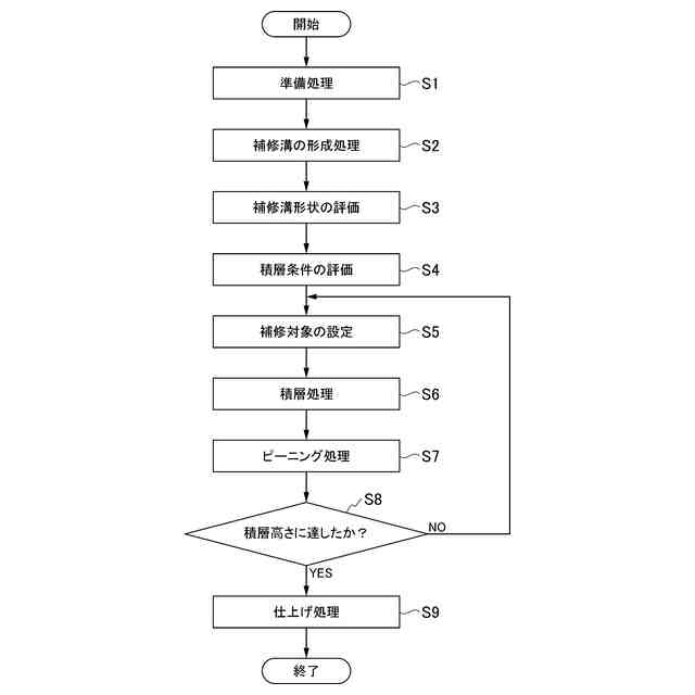 【解決手段】補修方法は、補修対象の亀裂を含む亀裂含有領域を除去することで、補修対象に補修溝を形成するステップと、補修溝に粉体材料を供給し、補修溝内の粉体材料を溶融させて造形層を積層造形するステップと、造形層が所定の積層ピッチだけ形成される度に、造形層に対して造形層に衝撃を与えて造形層に残留圧縮応力を付与するピーニング処理を行うステップと、を含む。