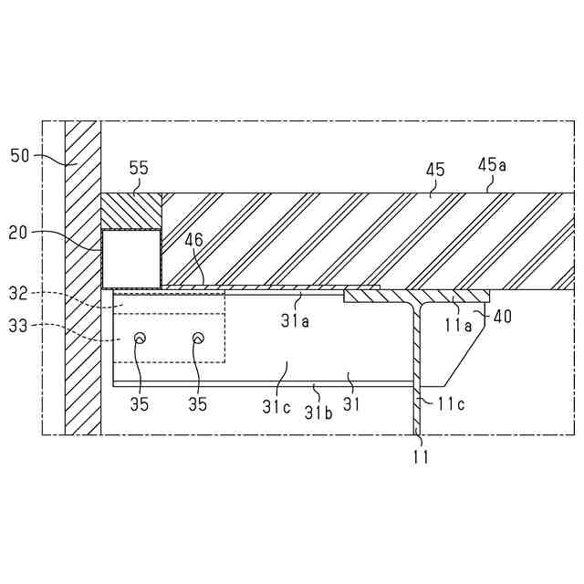 大梁11は、上フランジ11aと下フランジ11bとウェブ11cとを有するH型鋼によって構成されている。大梁11は、横方向に延びているとともに各階層に対応するように設けられている。大梁11の上フランジ11aは、上階の床スラブ45(図4参照)を支持する。