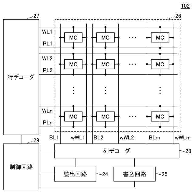 図1は、第1実施形態に係る記憶装置のブロック図である。図1に示すように、第1実施形態に係る記憶回路100は、メモリセルMC、読出回路24、書込回路25及び制御回路29を備えている。