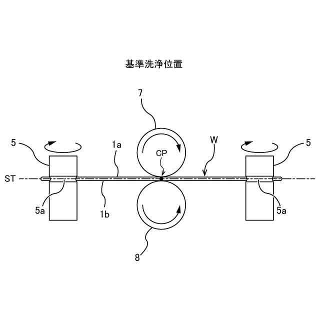 CMP後、ウェーハ表面、裏面、および側面(ベベル部)には、研磨液や研磨中の生成物等が残る。半導体ウェーハの製造プロセスでは、デバイス形成面の清浄度が重要である。そこで、研磨されたウェーハは研磨装置から洗浄装置に搬送され、ウェーハは洗浄装置により洗浄される。洗浄装置は、洗浄液をウェーハの両面に供給しながら、ロール洗浄部材でウェーハの両面をスクラブ洗浄する。