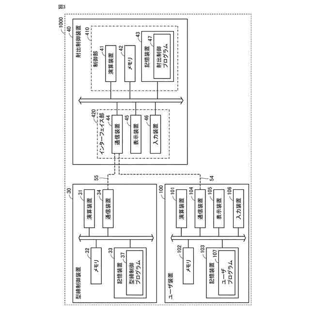 前記射出制御装置は、ユーザ装置とデータ通信可能に接続され、
