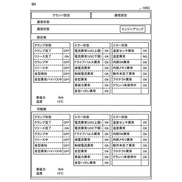 前記マグネットクランプの状態を示す状態データを前記型締制御装置から取得し、