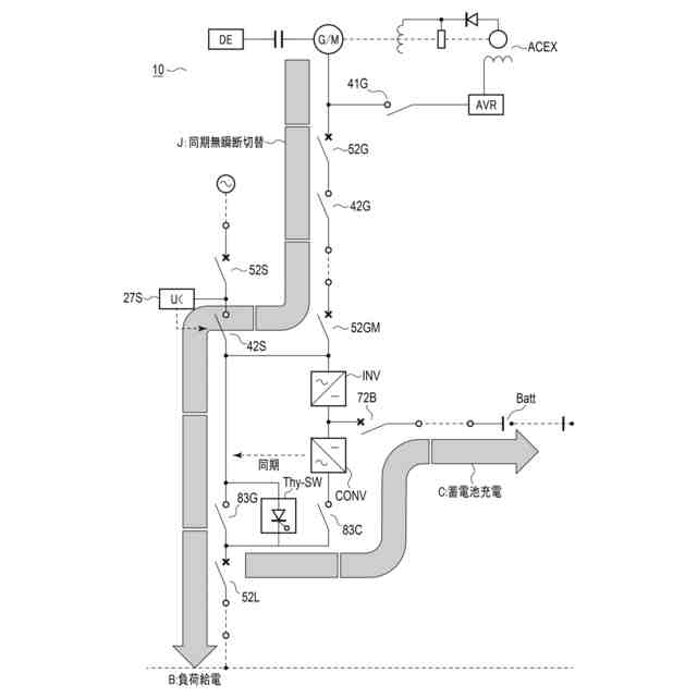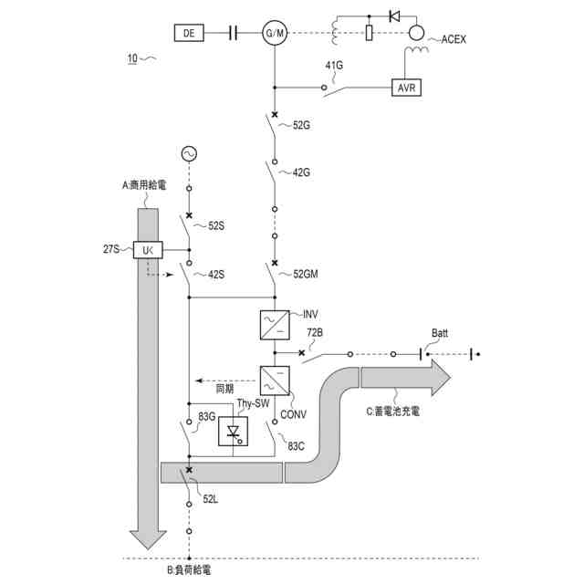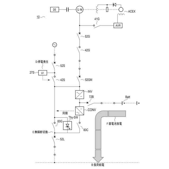 これらエンジン駆動式発電装置で接続された電力系統は、発電機により送電するまでの間、負荷への給電はできず、停電となる。