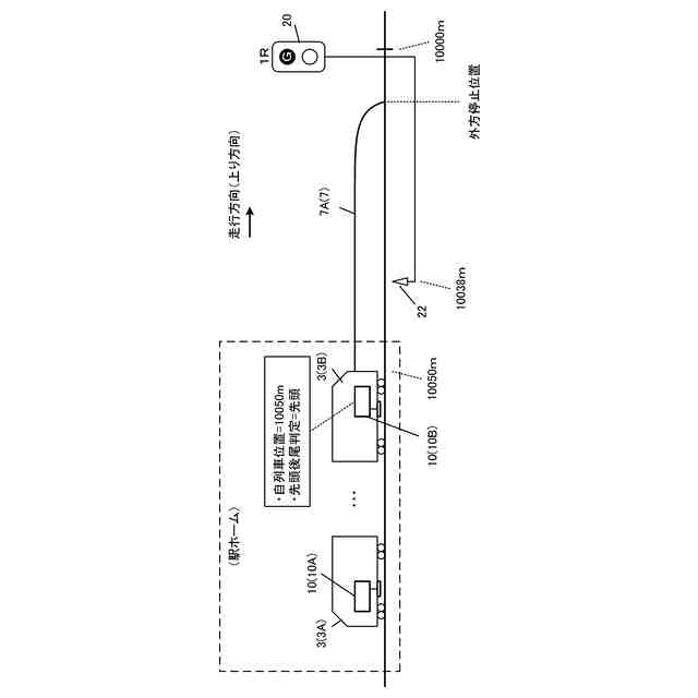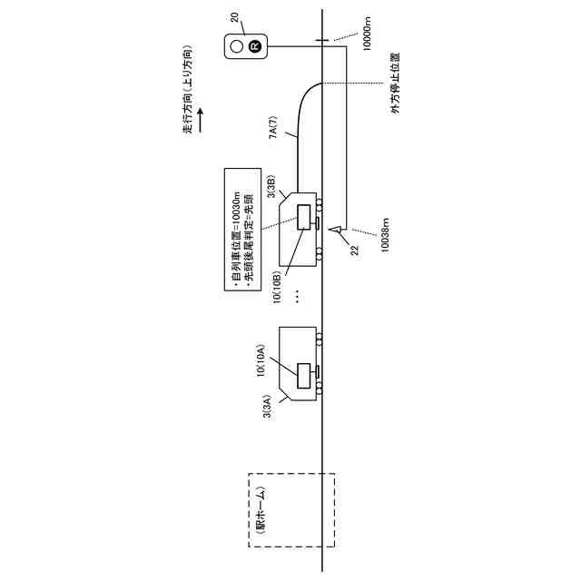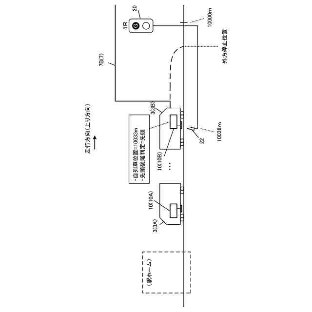 しかし、既設の信号保安設備が地上子による点送受信方式の場合、自動列車運転装置は、設置車両が先頭車両として運用される場合以外は機能を停止しているため、折り返し運転の出発時において自列車位置が認識できないという課題がある。この解決策として、折り返し運転の出発時に、運転士の走行開始操作により低速での走行を開始させ、走行開始から所定距離を走行するまでの間に最初の地上子を通過して自列車位置を確定できない場合には列車を停止させるシステムが提案されている(例えば、特許文献1参照)。