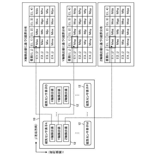 前記磁気センサ素子それぞれの検出値に基づく磁界分布を検出することと、
