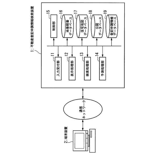 不動産登記申請情報検索装置の構成を示すブロック図である。