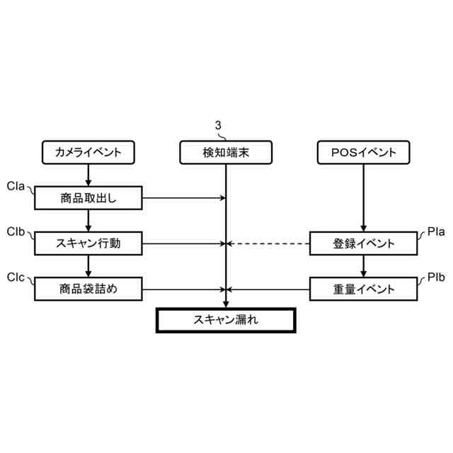 近年、人手不足又は人件費の高騰により、買物を行った購買者が購買商品の登録から取引代金の支払いまでをセルフで行うセルフチェックアウトシステムが普及している。その一方で、セルフチェックアウトシステムは、商品をスキャンせずに袋詰めをするというような不正行為が懸念される。そこで、購買者の行動をカメラで撮影し、その映像の解析をAI(Artificial Intelligence)で行うことにより、不正行為を検知した場合に通報するシステムが開発されている。