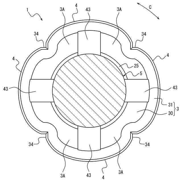 前記環状部は、前記軸方向に沿ったスリットが複数形成されて前記複数の花弁状部に分割され、