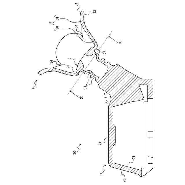 特許文献1には、イヤーピースが開示されている。このイヤーピースは、柱状の中央支柱部と、中央支柱部を覆う傘状部を有する。傘状部は第一部品および第二部品を有し、第一部品の硬度が第一硬度であり、第二部品の硬度が第一硬度よりも小さい第二硬度である。傘状部は、第一部品の上端が中央支柱部の頂端と連接し、第一部品の下端及び第二部品の上端が重なって切り替え区域を形成し、切り替え区域において第一部品の厚みが上部から下部にかけて徐々に減少しかつ第二部品の厚みが上部から下部にかけて徐々に増加している。傘状部は、切り替え区域の幅が傘状部の厚みの二倍から三倍である。