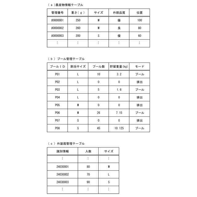 また、上記選別箱詰システムにおいて、前記制御装置は、前記貯留部の各々に割り当てるサイズを変動させることを特徴とする。