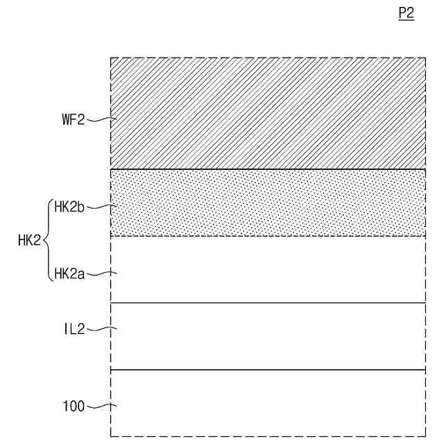上記目的を達成するためになされた本発明の他の態による半導体装置は、第1領域及び第2領域を含む半導体基板と、前記第1領域の前記半導体基板上に配置される第1ゲート構造体と、前記第2領域の前記半導体基板上に配置される第2ゲート構造体と、を備え、前記第1ゲート構造体は、第1ゲート電極、前記第1ゲート電極と前記半導体基板との間の第1界面パターン、前記第1界面パターンと前記第1ゲート電極との間の第1高誘電パターン、及び前記第1高誘電パターンと前記第1ゲート電極との間の第1金属パターンを含み、前記第2ゲート構造体は、第2ゲート電極、前記第2ゲート電極と前記半導体基板との間の第2界面パターン、前記第2界面パターンと前記第2ゲート電極との間の第2高誘電パターン、及び前記第2高誘電パターンと前記第2ゲート電極との間の第2金属パターンを含み、前記第1金属パターン及び第2金属パターンは、同一の仕事関数を有する金属物質を含み、前記第1金属パターンは、前記第1高誘電パターンの上面に接する第1下部部分及び前記第1高誘電パターンから離隔される第1上部部分を含み、第2高誘電パターンは、前記第2界面パターンに隣接する第2下部部分及び前記第2金属パターンに隣接する第2上部部分を含み、前記第1高誘電パターン及び前記第1金属パターンの前記第1下部部分は、ランタン系列物質を含み、前記第2高誘電パターンの前記第2上部部分の酸素含量は、前記第2下部部分の酸素含量よりも大きい。