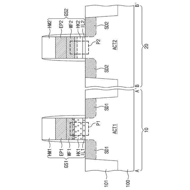 本発明によれば、互いに異なる閾値電圧を有する第1及び第2トランジスタで、第1及び第2ゲート構造体の高さの差を減らしながら、第1及び第2トランジスタの閾値電圧を最適化することができる。