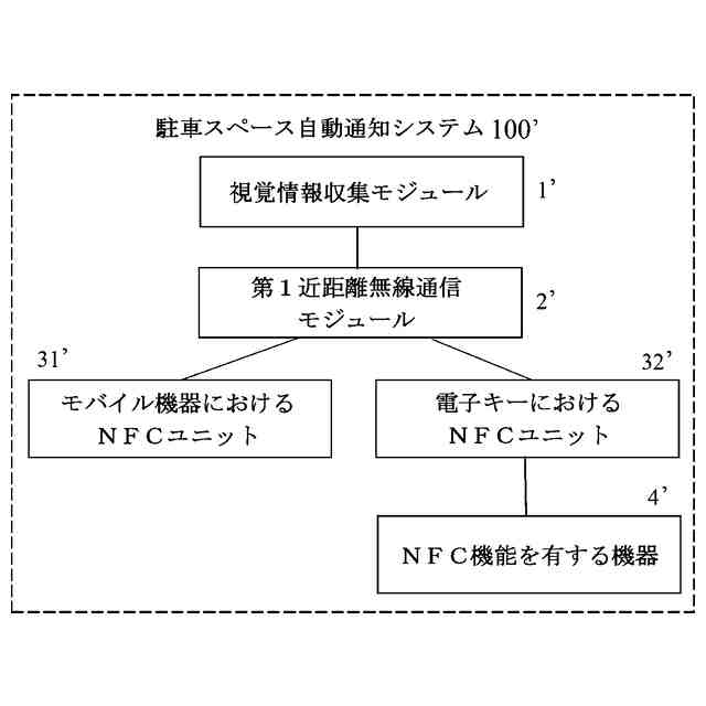 【解決手段】本発明は、自動車に設けられ、駐車スペース情報を視覚的に収集して送信する視覚情報収集モジュールと、自動車に設けられ、視覚情報収集モジュールから送信された駐車スペース情報を受信して送信する第1近距離無線通信モジュールと、モバイル機器に設けられ、第1近距離無線通信モジュールと無線通信接続を確立し、第1近距離無線通信モジュールから送信された駐車スペース情報を受信し、駐車スペース情報をモバイル機器に記憶する第2近距離無線通信モジュールと、を含む、駐車スペース自動通知システムを提供する。