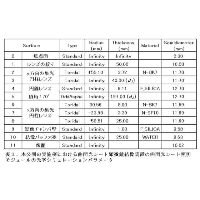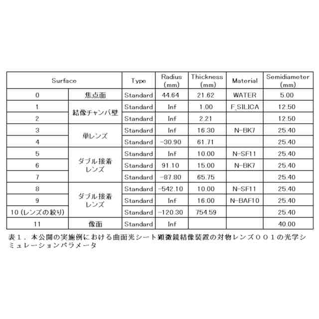 【効果】既存のライトシート顕微鏡技術がセンチメートル規模の透明サンプルの結像においてスループットが低く、視野の結合が必要となる技術的問題を解決するのに役立つ。また、顕微鏡対物レンズ設計におけるフィールドカーブ問題の解決に寄与し、高スループット対物レンズの設計難度と製造コストの低減を可能とする。