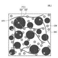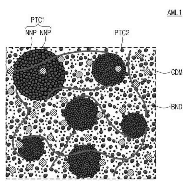 下記の化学式2の化合物を含み、前記第1平均粒径より小さい第2平均粒径を有する第2粒子と、を含むものの、