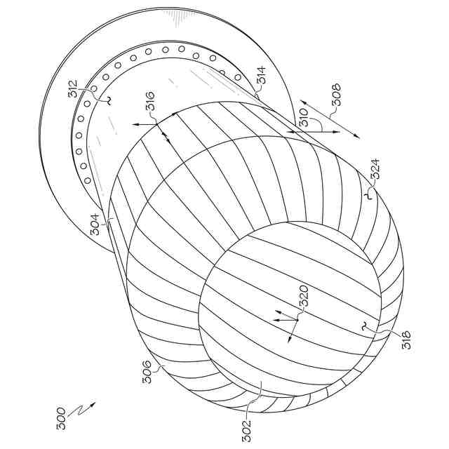 [0002] 円筒と一体化したドームとを含む複合材構造の現在の設計は、順次終端するスカーフを使用する。このスカーフは、ドーム繊維の配置を制限する。これにより、弾性率のばらつきが大きく、「ソフトスポット」(すなわち、低弾性率(low Ex))がもたらされる。