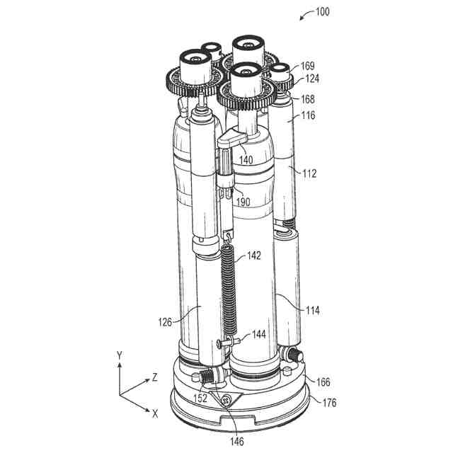 一実施例による、化粧品分注器の内部構成要素の斜視図である。