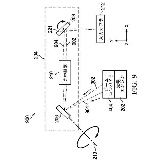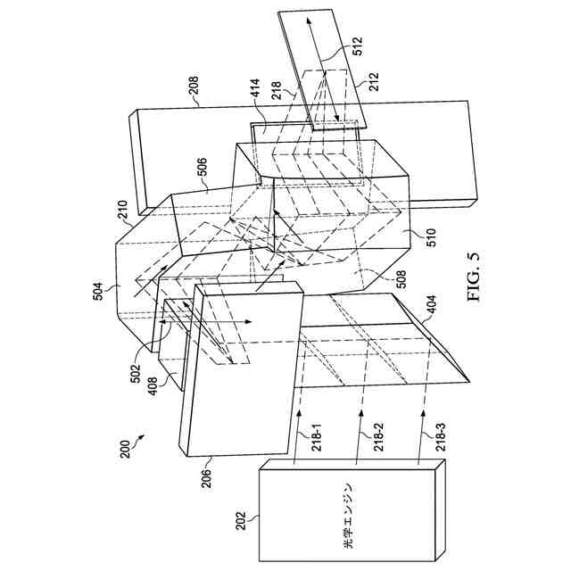 図1~図14は、光中継器の異なる反射面によってそれぞれ異なる大きさのビーム拡張が適用される、複数の角度的に分離されたレーザ入力を有するニアアイディスプレイシステム(例えば、ウェアラブルヘッドアップディスプレイ(WHUD))または別のディスプレイシステムをコンパクトに配置するための実施形態を示す。本明細書に記載の技術を用いて、そのようなディスプレイシステムの2つ以上のレーザ入力(場合によっては、本明細書において「レーザ光ビーム」と呼ばれる)が互いに対し角度的に分離され、それによってこれらの2つ以上のレーザ光ビームは、互いに対し平行でも垂直でもなく、代わりに傾いた(すなわち、「角度的にオフセットされた」、「角度的に分離された」)光路に沿って伝播する。2つ以上のレーザ光ビームの角度分離に起因して、システムの光学スキャナの1つまたは複数の走査ミラーに対するそのようなレーザ光ビームのそれぞれの入射角は通常異なり、結果として、同じまたは類似のビーム直径を有するレーザ光ビームについて、そのような走査ミラーに対するレーザ光ビームのそれぞれ異なるサイズの入射領域が得られ、これはWHUDでの性能およびユーザ体験に影響を及ぼし得る。そのような角度的に分離された光ビームの入射領域のそれぞれの入射角および対応する面積の差を補うために、それぞれ異なるレベルのビーム拡張(すなわち、拡大)が、角度的に分離されたレーザ光ビームの各々に適用され、それによって、いくつかの実施形態では、光学スキャナの所与の走査ミラーにおける角度的に分離されたレーザ光ビームのそれぞれの入射領域の面積は、同じであるかまたは概ね同じである。