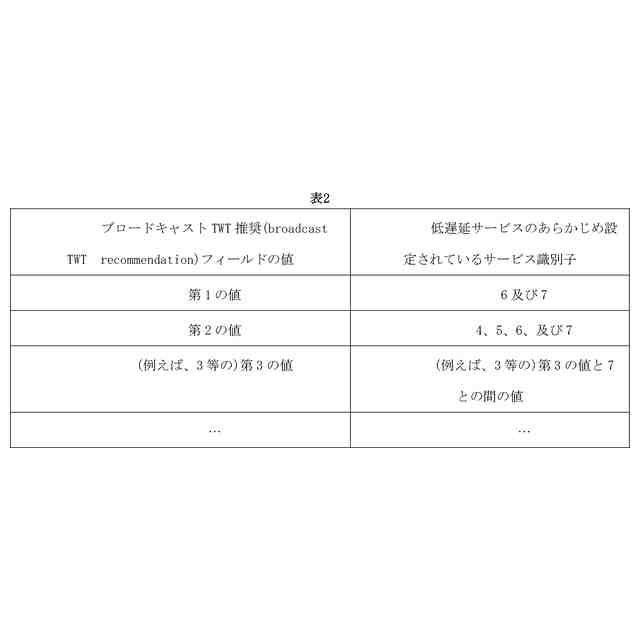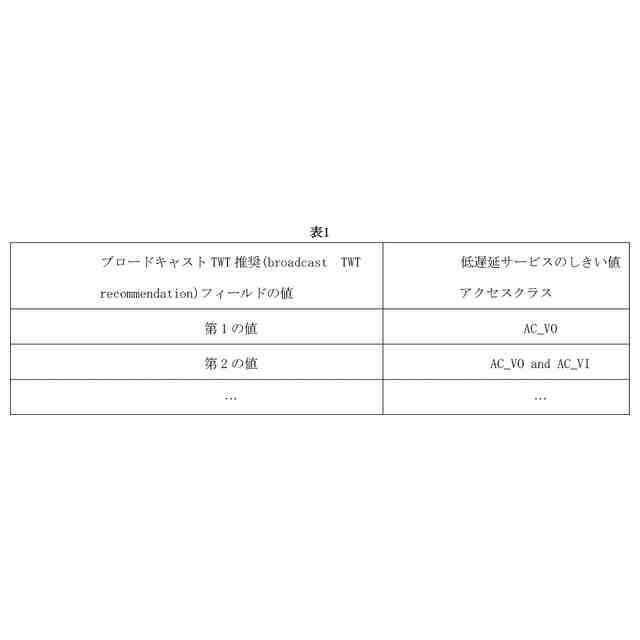 ターゲット休眠解除時間(target wake time, TWT)は、Wi-Fi6が定義するエネルギー節約技術であり、局(station, STA)及びアクセスポイント(access point, AP)が、サービス期間(service period, SP)について合意し、そして、そのサービス時間の中でアクティブ状態を維持して通信を実行してもよく、それによって、局及びアクセスポイントは、そのサービス時間以外の時間の中で休眠状態を維持して、エネルギーを節約することが可能であるということを意味する。TWTは、サービス時間について合意する方法の違いに応じて、個々の(individual)TWT及びブロードキャスト(broadcast)TWTに分類されてもよい。