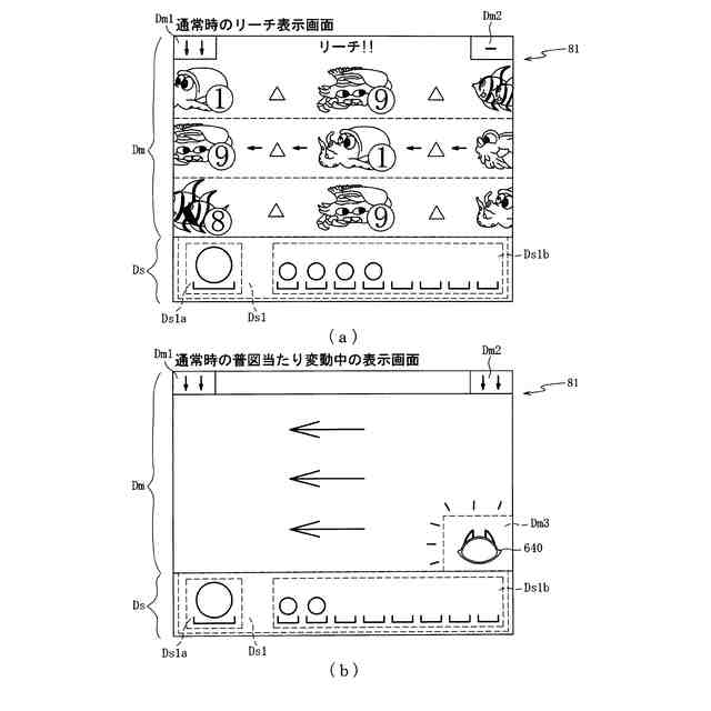 この目的を達成するために請求項1記載の遊技機は、遊技球を発射可能な発射手段と、その発射手段によって特定方向へと発射された遊技球が入球可能な位置に設けられている入球手段と、その入球手段へと遊技球が入球可能となる第1位置と、前記入球手段へと遊技球が入球困難となる第2位置と、に変位可能な変位手段と、前記入球手段へと遊技球が入球したことに基づいて所定数の賞球を払い出すことが可能な払出手段と、を有し、所定の設定条件が成立したことに基づいて、所定の状態を設定する状態設定手段と、遊技に関する特定データを定期的に更新可能な更新手段と、少なくとも前記所定の状態において、前記特定データを少なくとも用いて判別を実行する判別手段と、その判別手段により所定の判別がされた場合に、前記変位手段を所定期間、前記第2位置から前記第1位置へと変位させる手段と、を備え、前記所定の状態は、前記特定方向へと遊技球を発射し続けたとしても前記変位手段が少なくとも特定の長さの期間前記第2位置から前記第1位置へと変位されない第1の状況と、前記特定方向へと遊技球を発射し続けた場合に前記特定の長さの期間において前記変位手段が複数回前記第2位置から前記第1位置へと変位され得る第2の状況と、が成立し得る構成である。